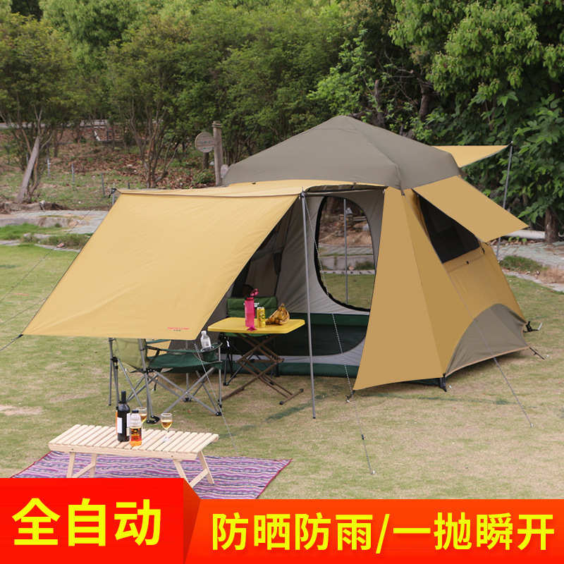 帐篷户外3-4人野营双层防晒防水防蚊虫自动家庭露营烧烤庭院天幕