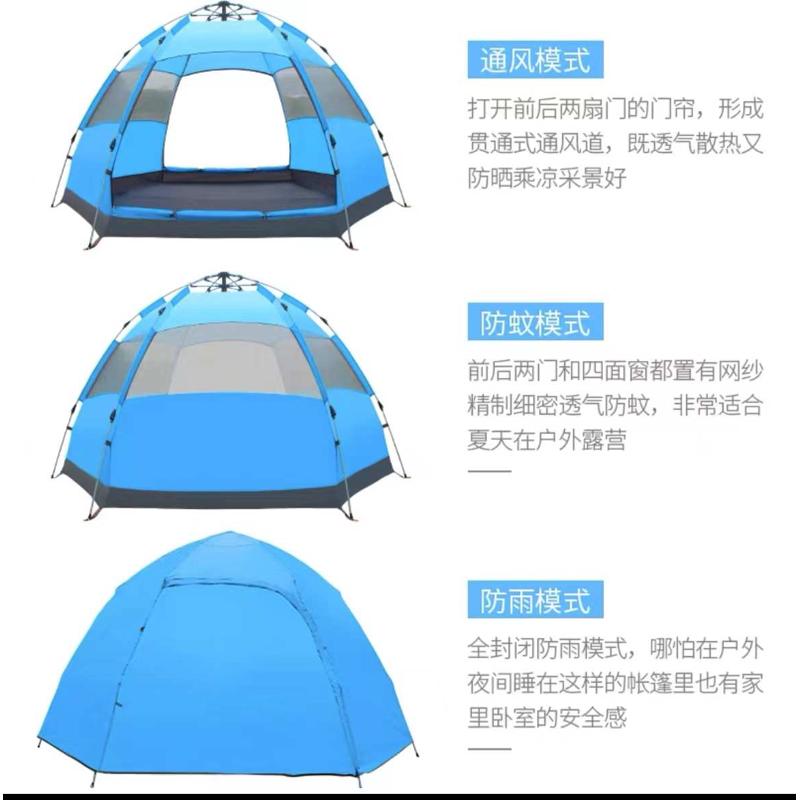 户外帐篷3-4人5-8人双层全自动防雨露营帐篷野外野营六角帐篷