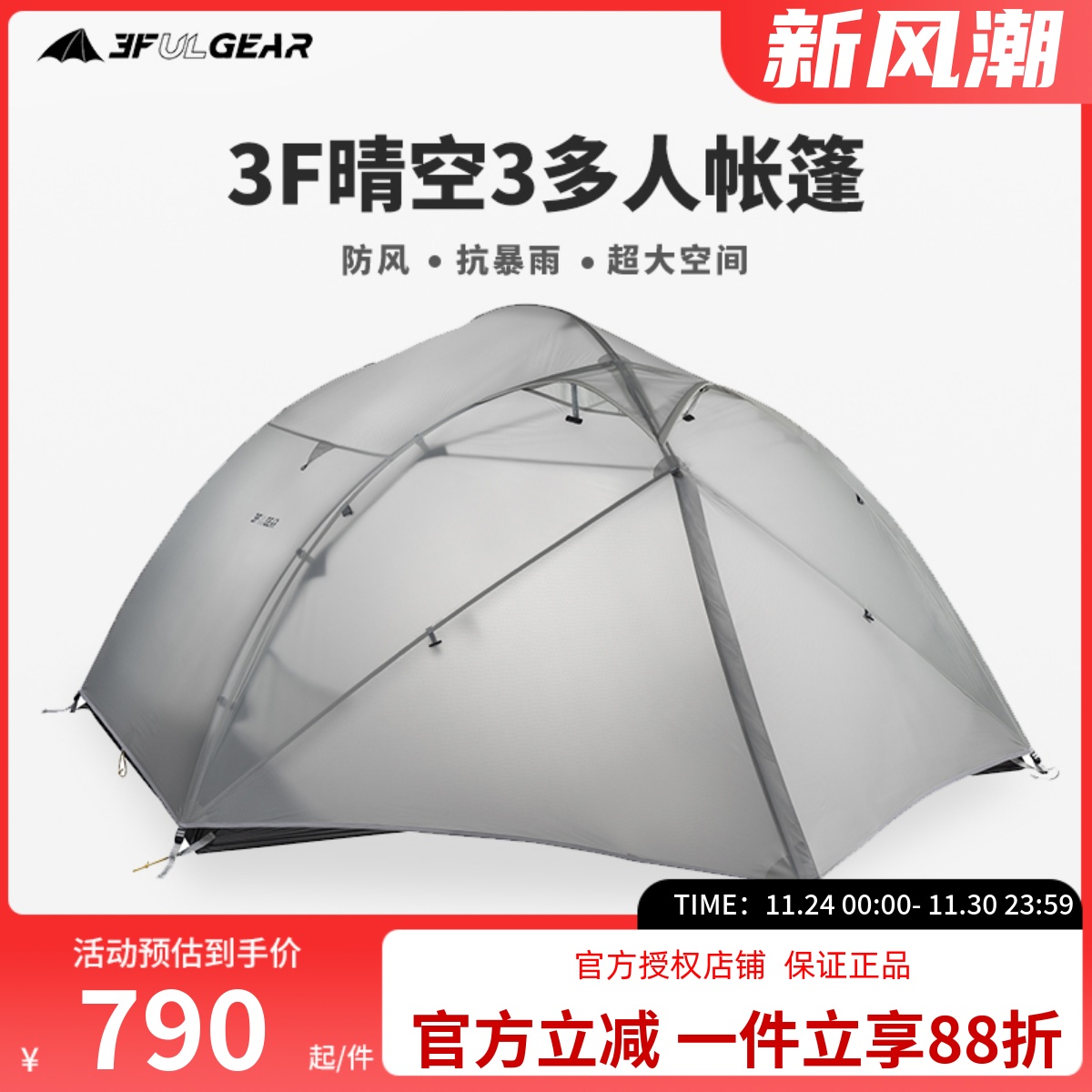 三峰晴空3人4人超轻防水防雨抗风耐撕裂耐磨双层涂硅户外露营帐篷