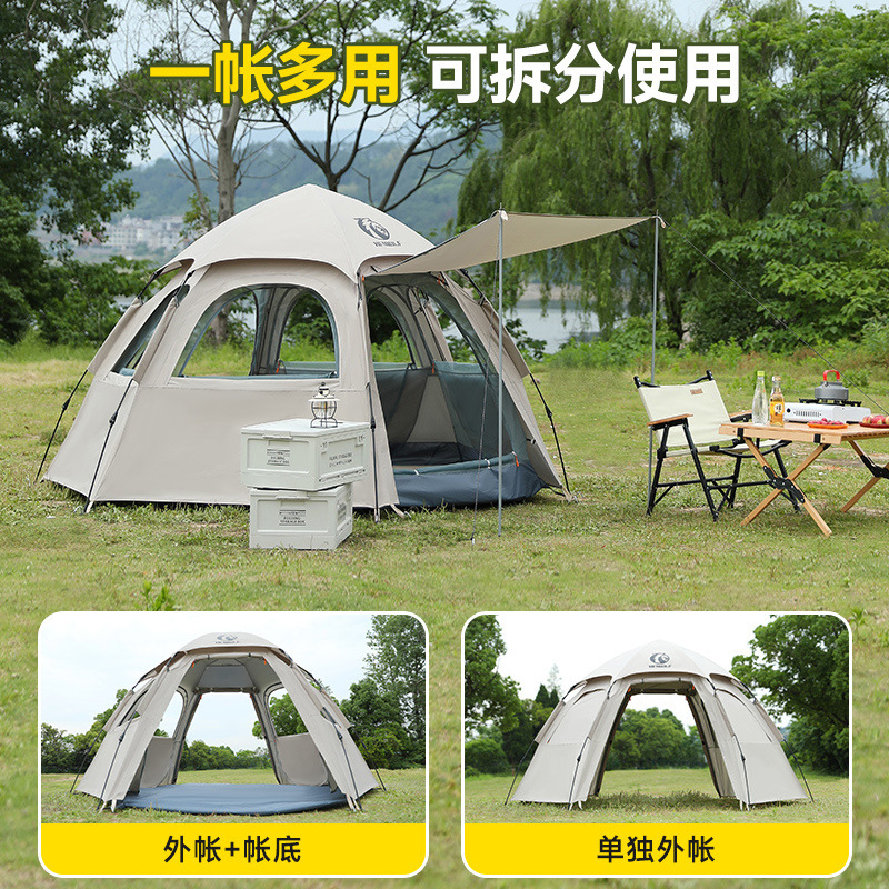 帐篷户外3-4人野营加厚防风暴雨全自动六角超轻便双层露营沙滩棚2