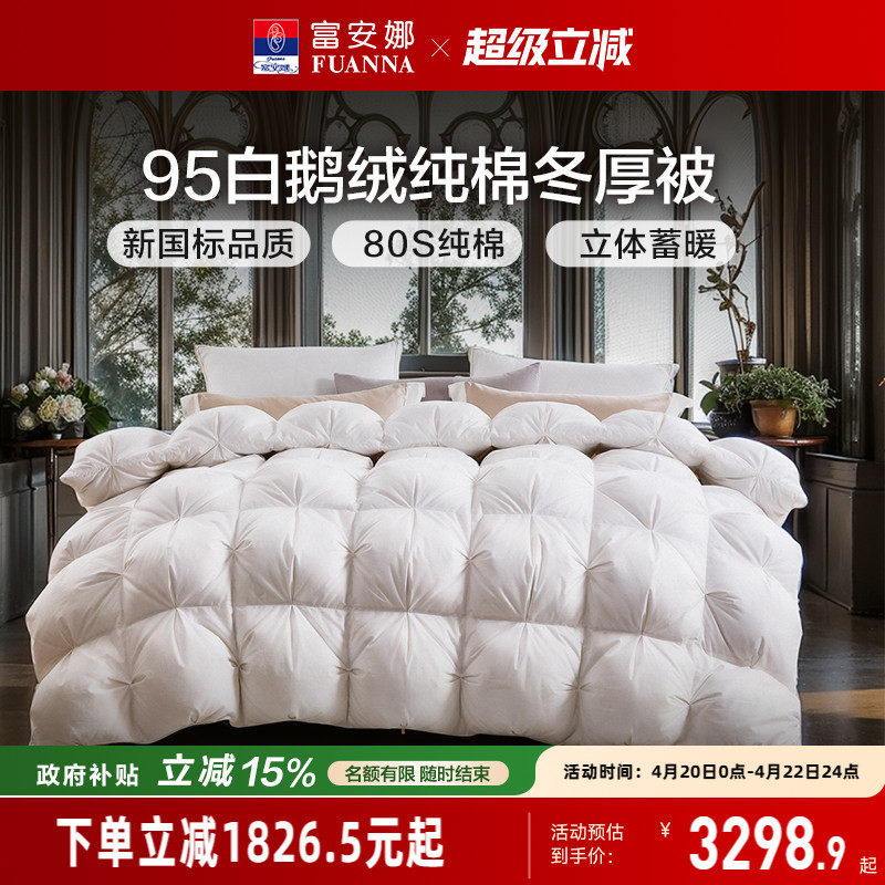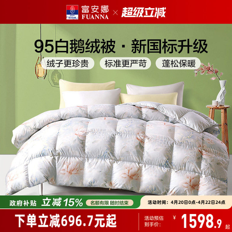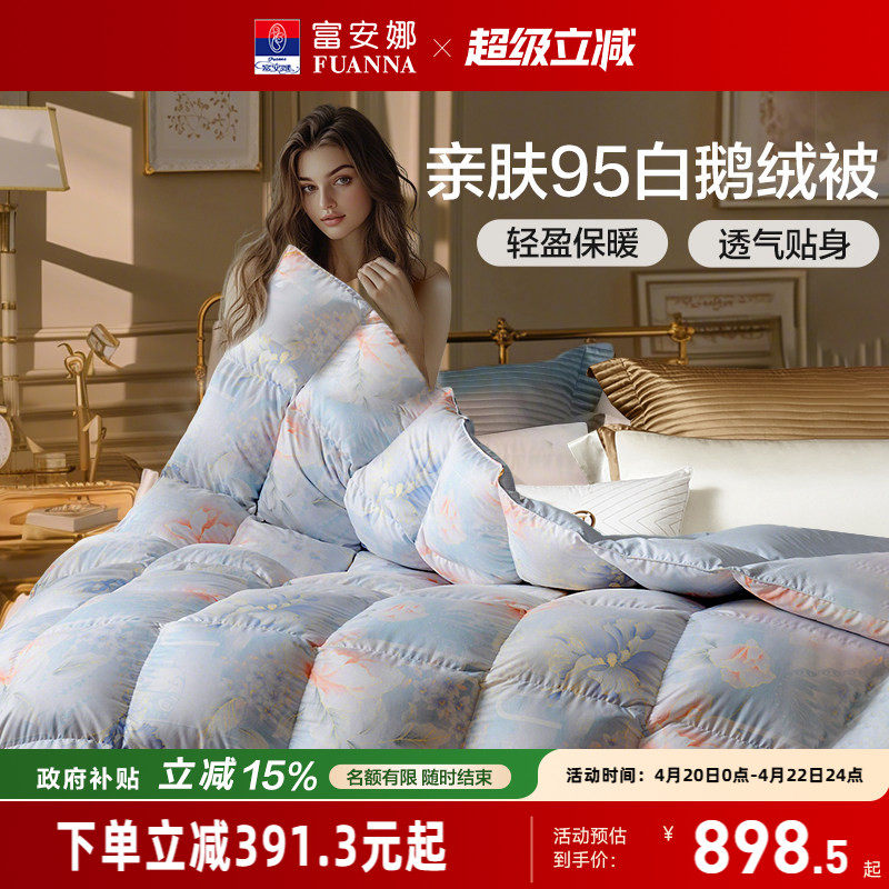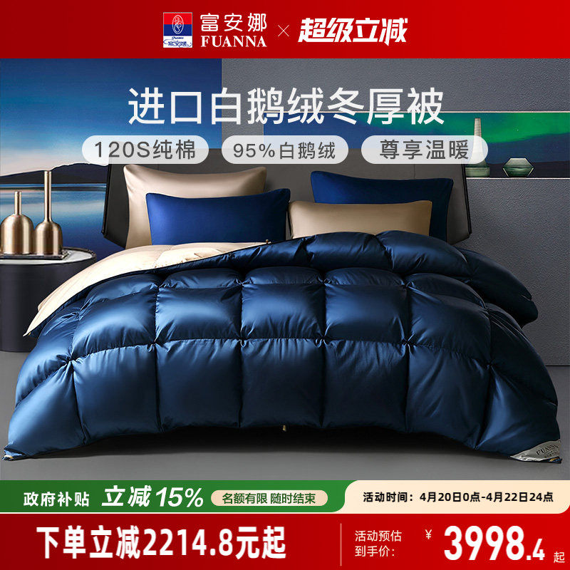 富安娜羽绒被冬厚被乌克兰进口95白鹅绒被子冬季保暖纯棉加厚被芯