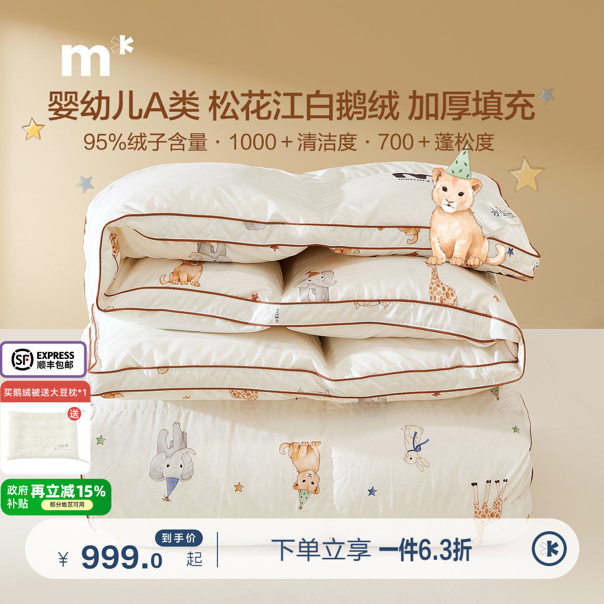 水星儿童95白鹅绒被加厚羽绒被被子A类抑菌防螨可水洗白鸭绒被芯