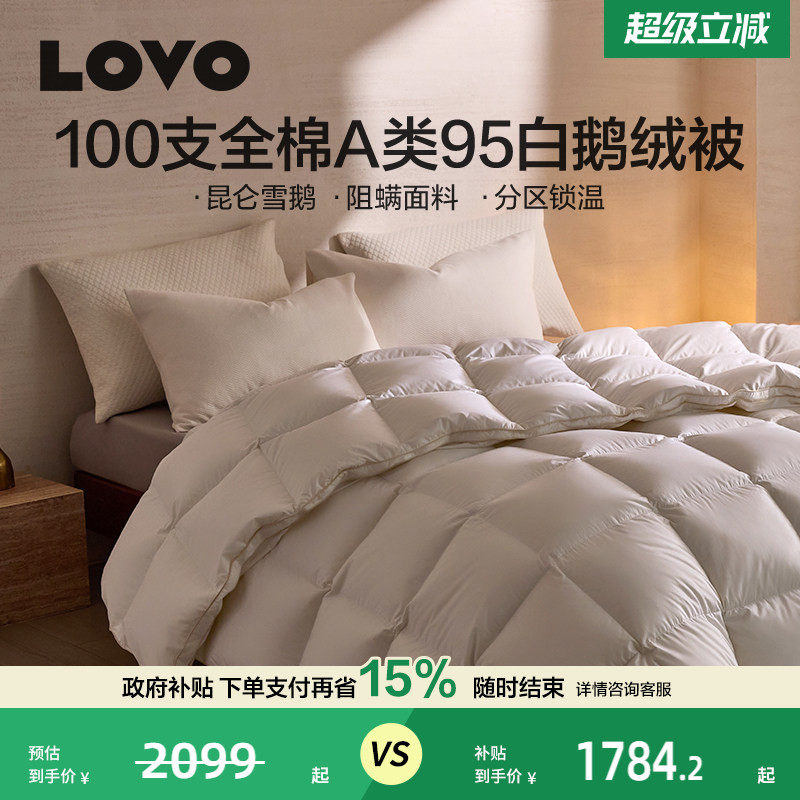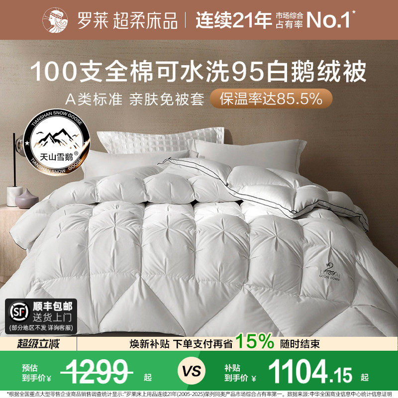 罗莱家纺LOVO羽绒被95白鹅绒被子被芯加厚冬被四季通用100支全棉