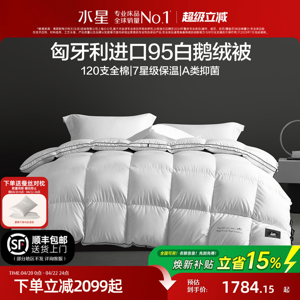 水星家纺进口羽绒被95白鹅绒春秋被120支长绒棉A类锁温被芯床品
