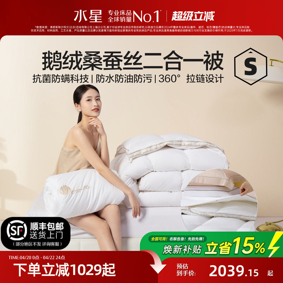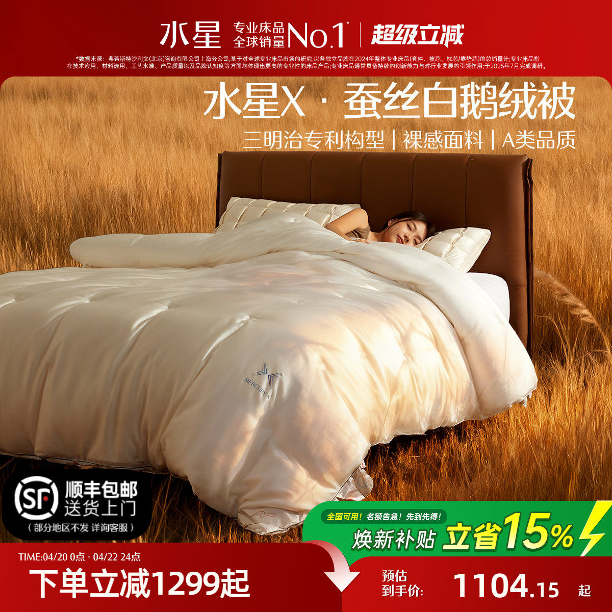 水星家纺95白鹅绒蚕丝被芯春秋被X被三明治被保暖床品青桑有机