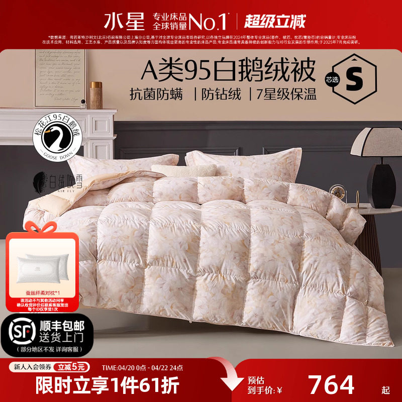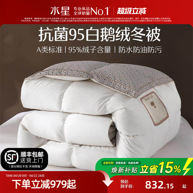 水星家纺鹅绒被羽绒被95白鹅绒春秋被冬被加厚保暖被芯被子床品