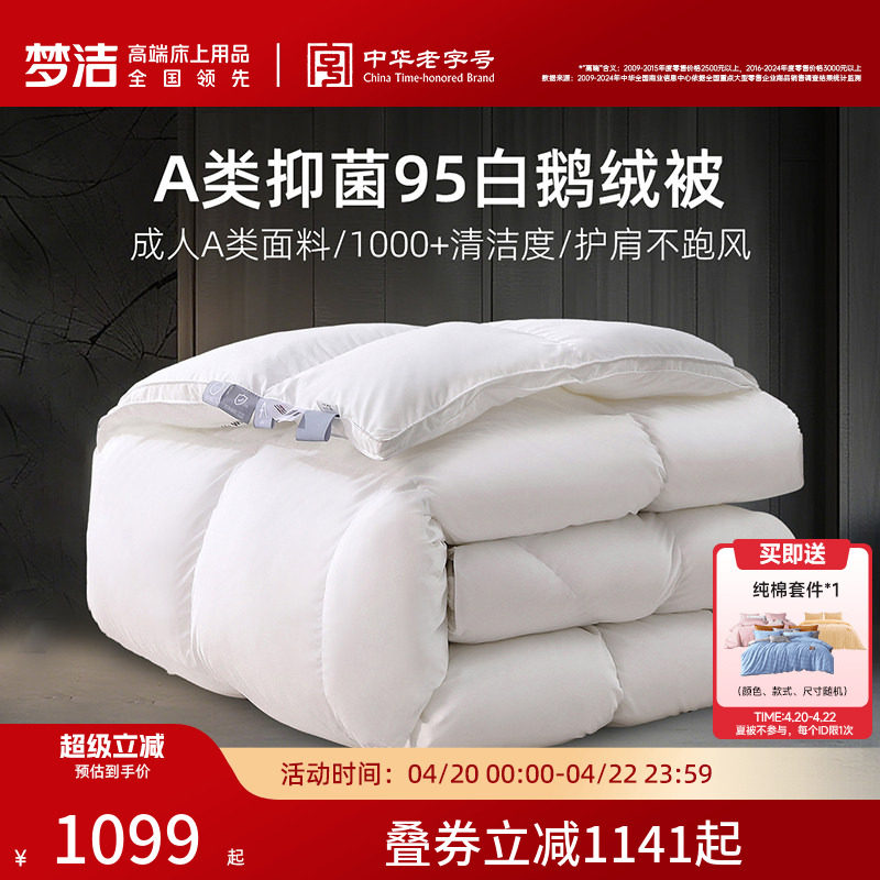梦洁羽绒被子95白鹅绒被芯春秋被抗菌高蓬松冬被保暖加厚结婚送礼