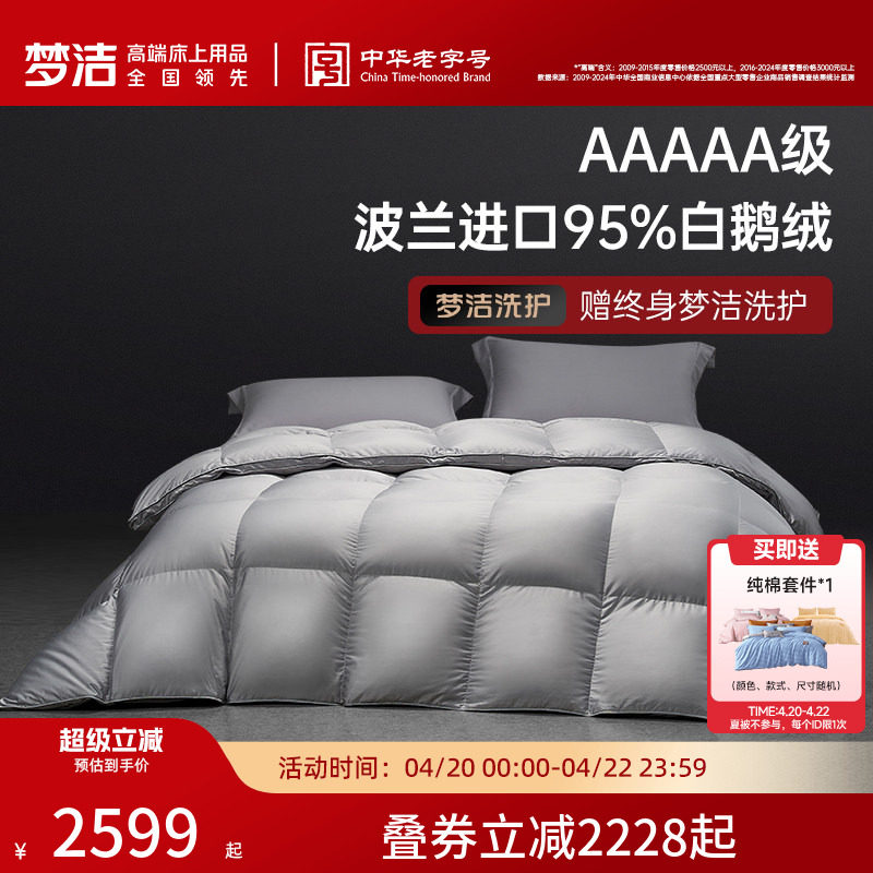 梦洁家纺白鹅绒被子波兰进口95绒子冬季加厚保暖被芯空调被锁温