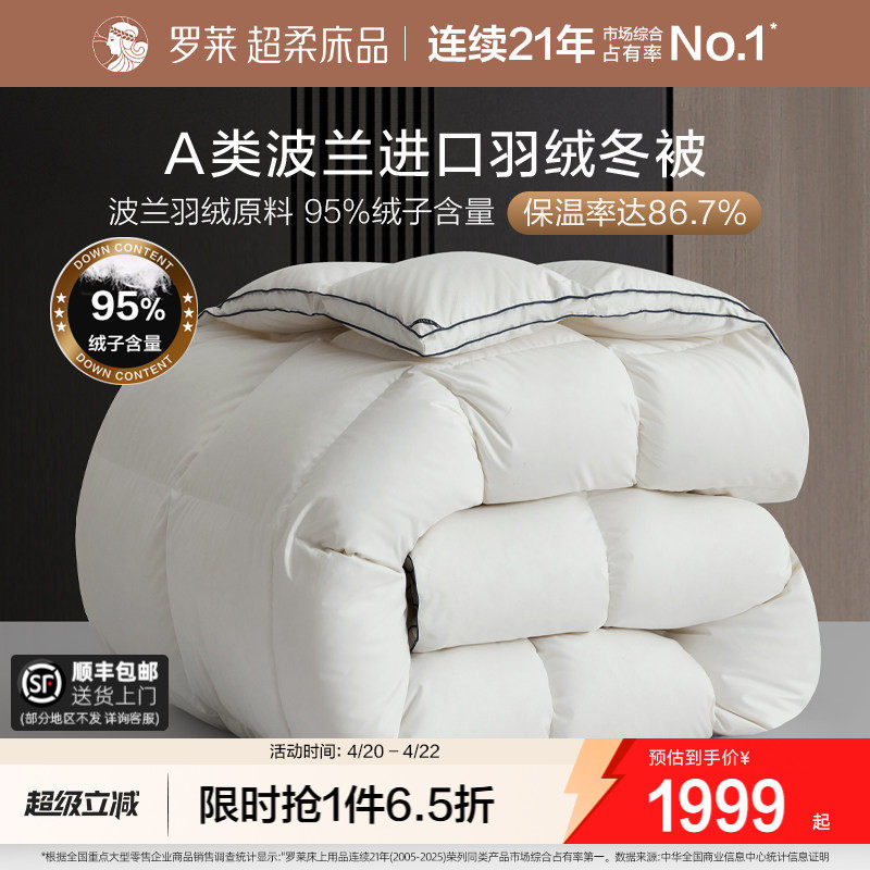 罗莱家纺波兰进口95羽绒被子A类阻螨加厚保暖冬被芯高端白鸭绒被