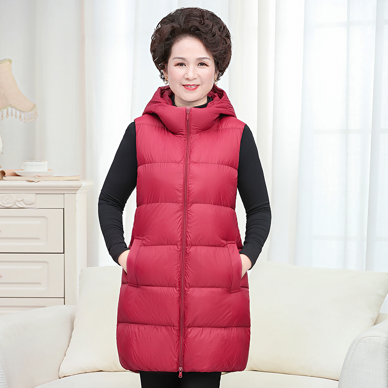 90绒中长款超薄羽绒服马甲女连帽妈妈装内胆大码背心保暖坎肩冬季