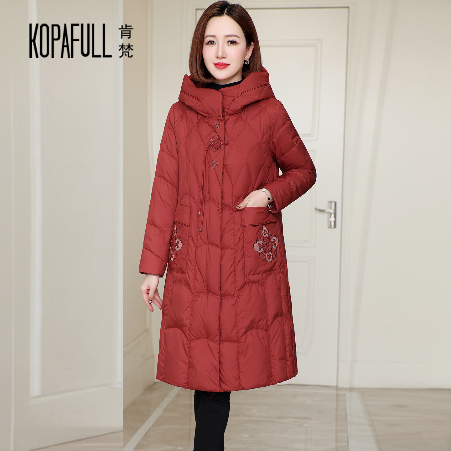 - 羽绒服女中长款修身型