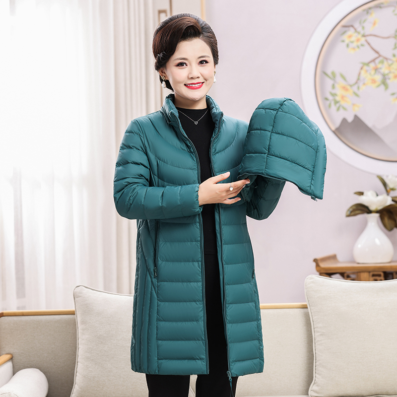 - 立领轻薄羽绒服女中长款