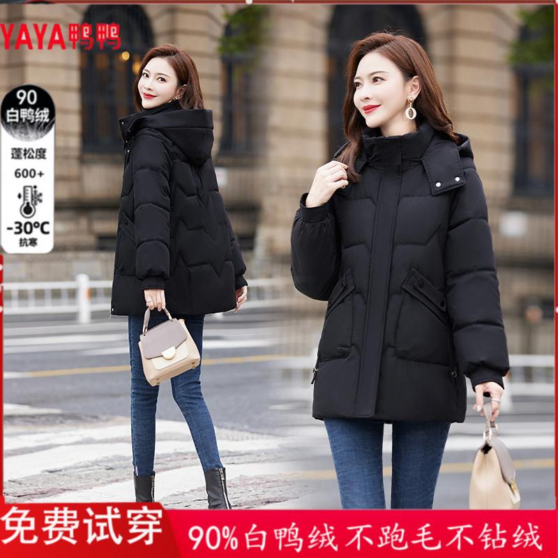 鸭鸭官方品牌宽松羽绒服女中长款2024年冬季新款大码鸭绒外套百搭