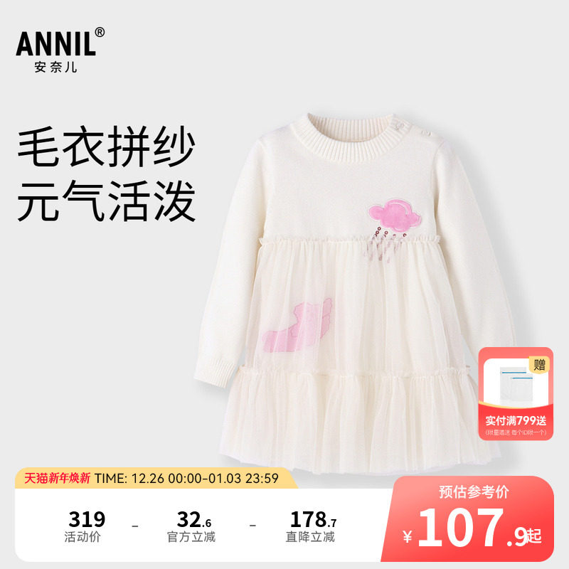 BANANA CICI2025年冬季新款撞色刺绣假两件坎肩长袖A摆针织连衣裙
