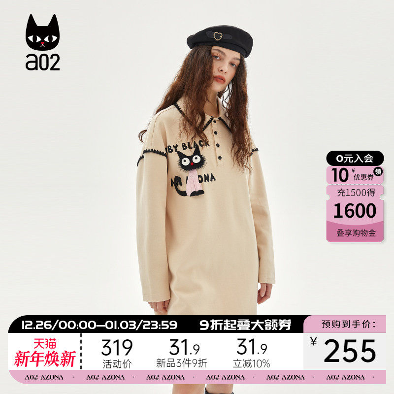 a02秋季装女款2025年新款polo领针织绣花直筒通勤风宽松连衣裙女