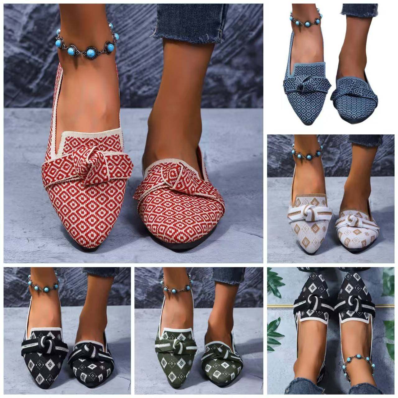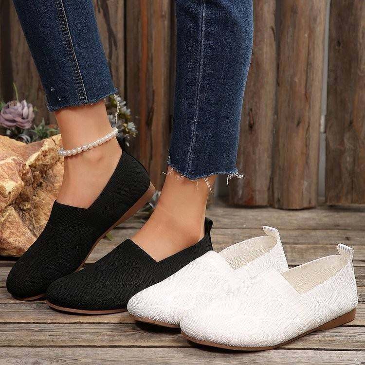 新款平底女士单鞋春夏季新款豆豆鞋编织飞织一脚蹬休闲大码女鞋定
