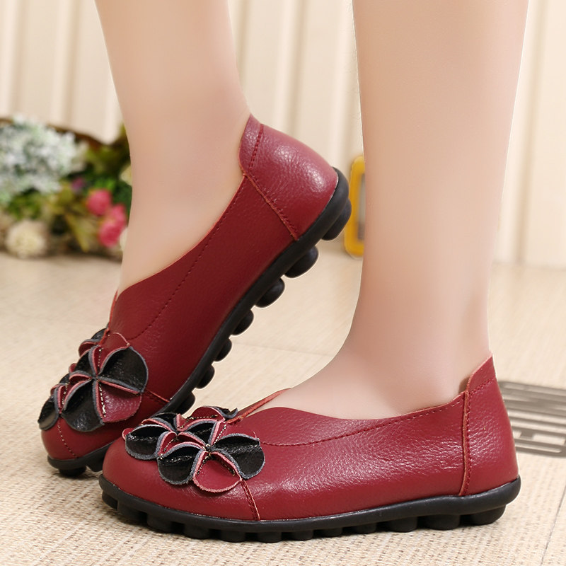 妈妈鞋软底女牛筋底舒适平底一脚蹬防滑软面皮女士豆豆鞋休闲单鞋