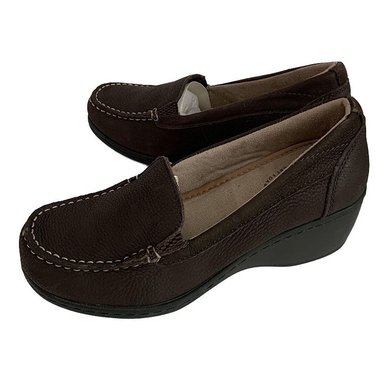 外贸原单大码真皮女士软底妈妈鞋2022新款坡跟休闲单鞋豆豆浅口鞋