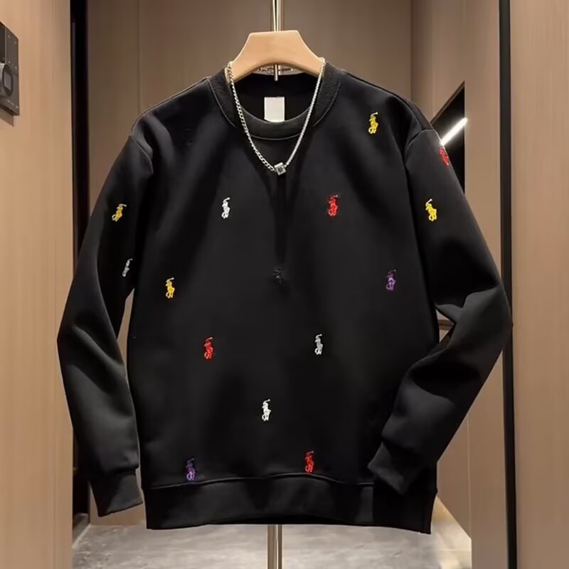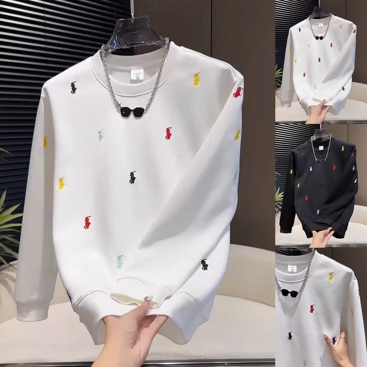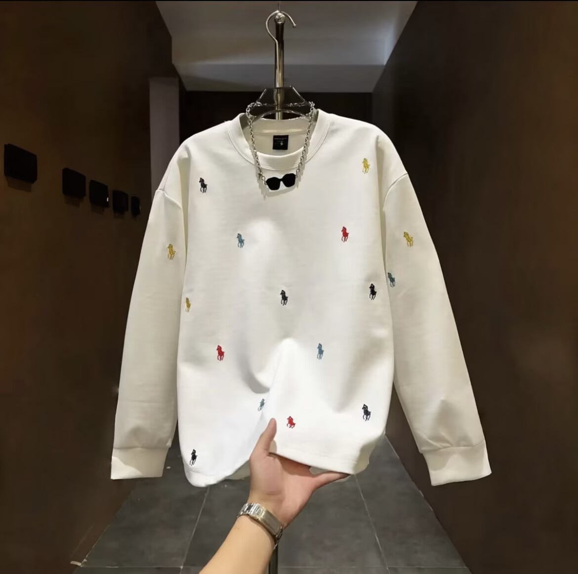春秋季美式休闲长袖卫衣男士刺绣战马圆领潮牌痞帅百搭上衣棒球服
