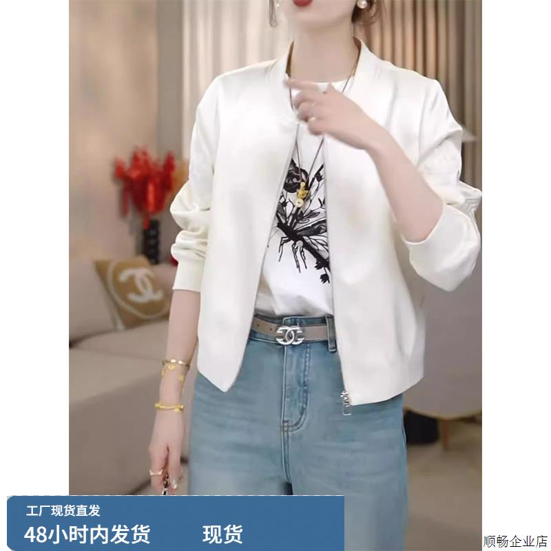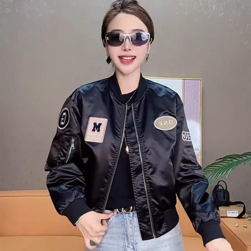2025早秋新款设计感蜜蜂刺绣圆领百搭棒球服外套女装显瘦长袖上衣