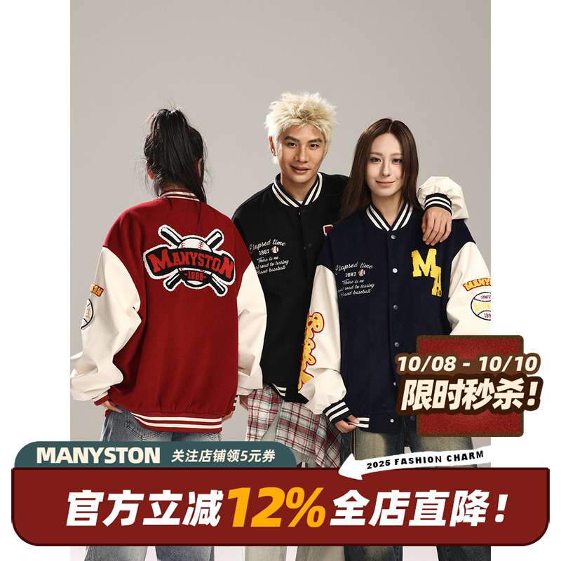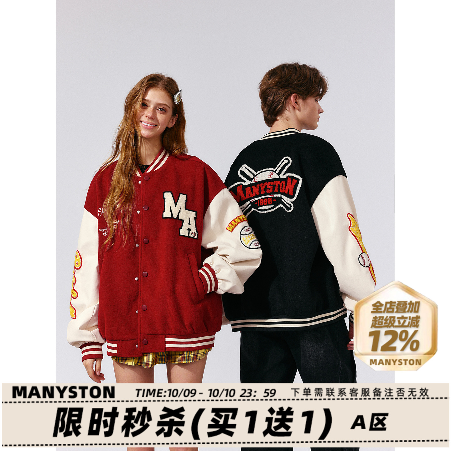 MANYSTON美式刺绣棒球服夹克衫男生款春秋季宽松情侣休闲长袖外套