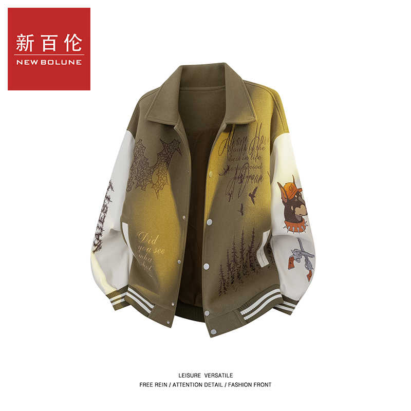 新款夹克外套长袖定制高端刺绣印字宽松男女同款团购工作服棒球服