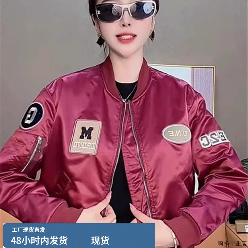棒球服女春秋季新款时尚休闲短款长袖立领夹克飞行员字母刺绣外套