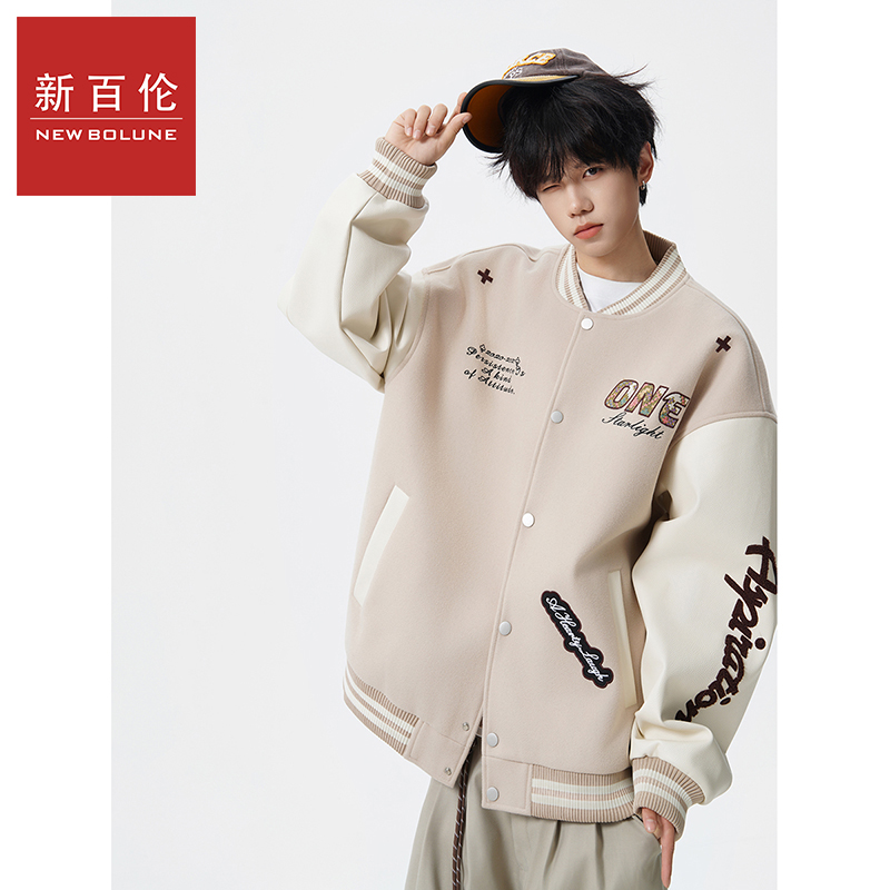 新百伦重磅530克长袖美式男士刺绣棒球服外套飞行夹克美式秋冬季
