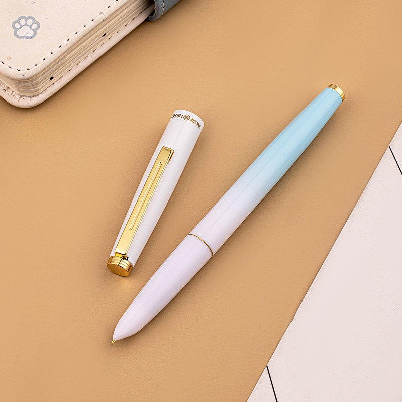 HERO英雄官方上海总厂生产329-2钢笔怀旧收藏老款学生用书写练字铱金笔商务办公送礼暗尖财会特细0.38