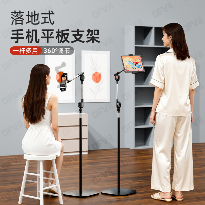 落地式手机平板支架360°调节一杆多用居家办公直播支架ipad手机平板支架落地直播追剧神器懒人万向悬臂支架