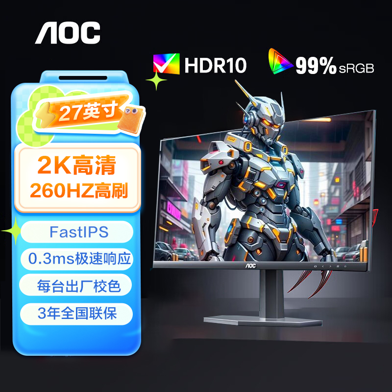 AOC显示器27英寸2K高清高刷260HZ电竞FastIPS游戏HDR10游戏显示屏