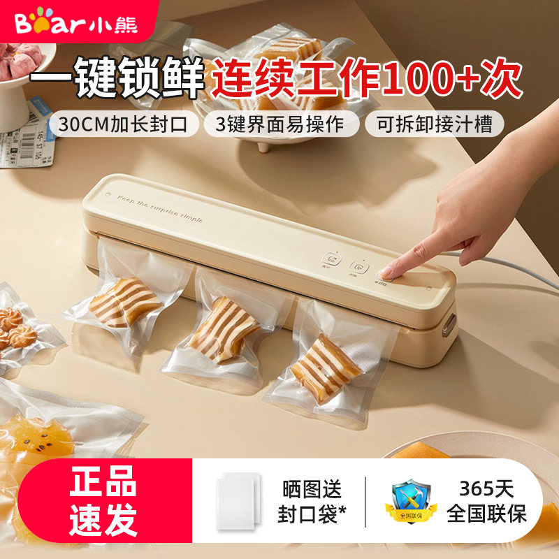 小熊全自动真空封口机家用保鲜抽真空机密封机防潮包装食品塑封机
