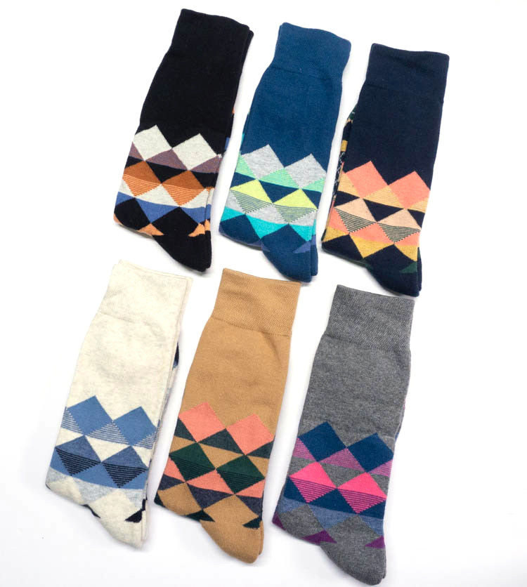 舒适棉质跟趾毛圈足弓平衡拱三角菱格中厚春秋冬中筒男袜6色JO056