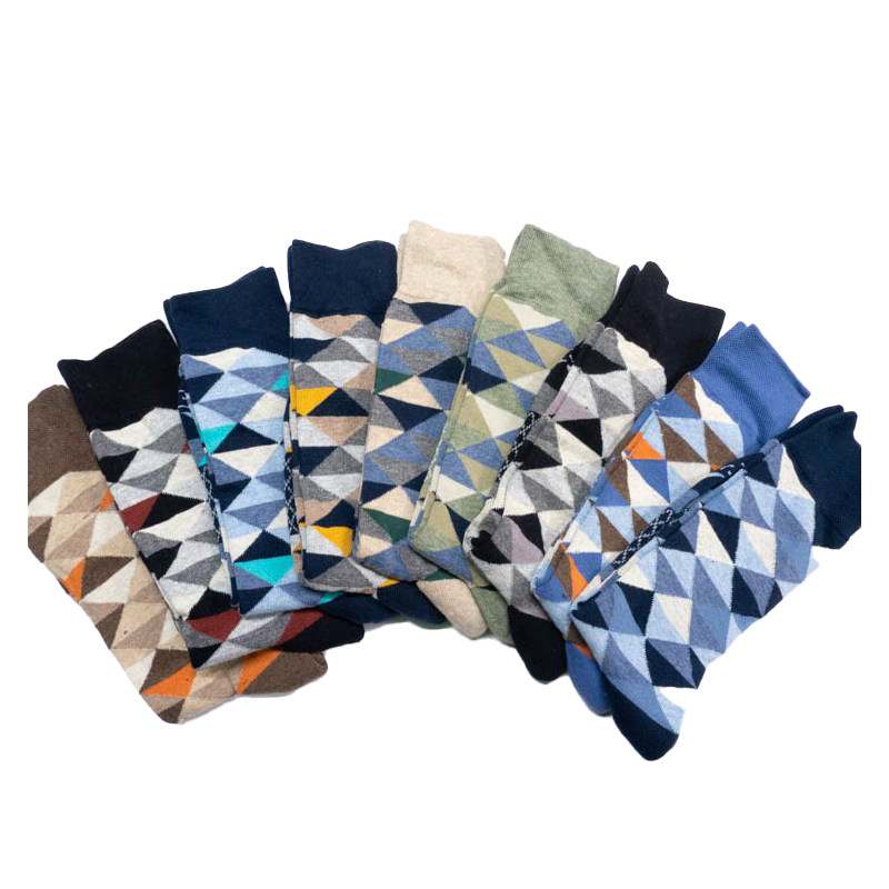 舒适棉质跟趾毛圈足弓平衡拱三角菱格中厚春秋冬中筒男袜9色JO055