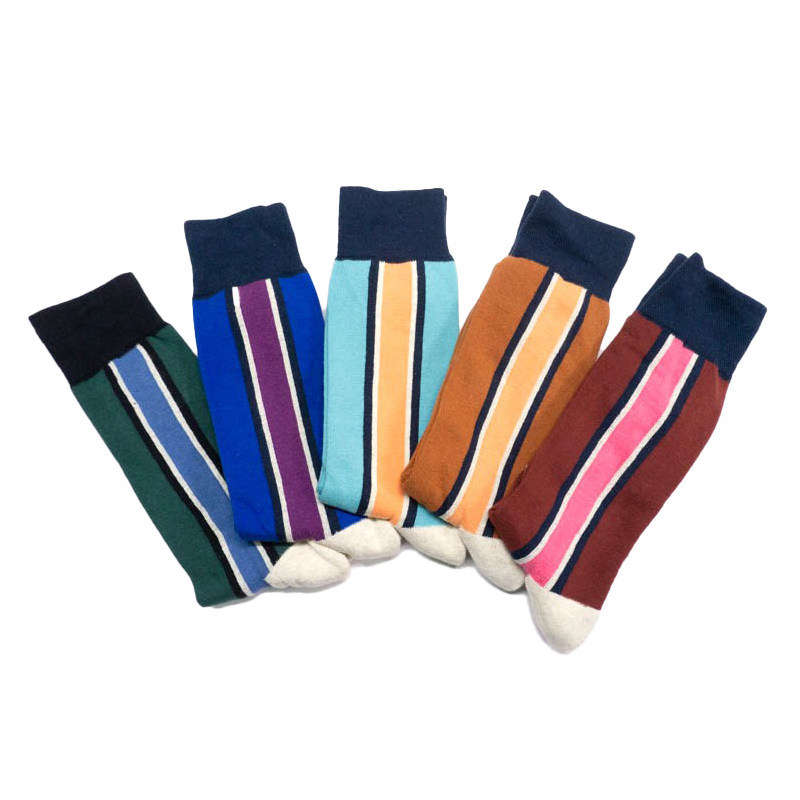 舒适棉质跟趾毛圈足弓平衡拱竖条纹中厚春秋冬中筒男袜5色JO053