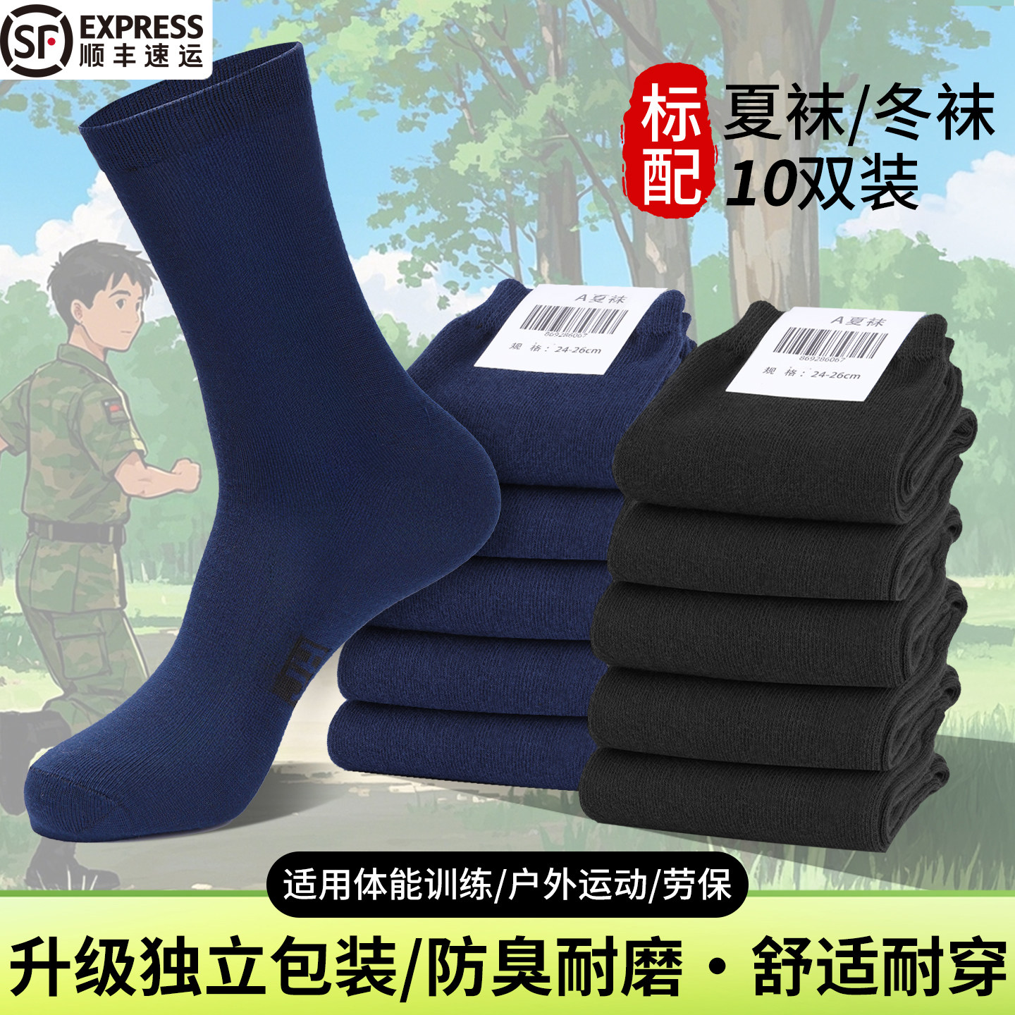 军迷袜子夏袜秋冬袜防臭耐磨吸汗制式袜子中筒黑色运动男袜藏青色