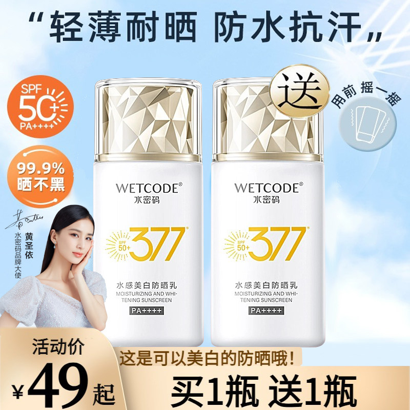 水密码377美白防晒霜不油腻军训通勤防晒乳防紫外线官方正品SPF50