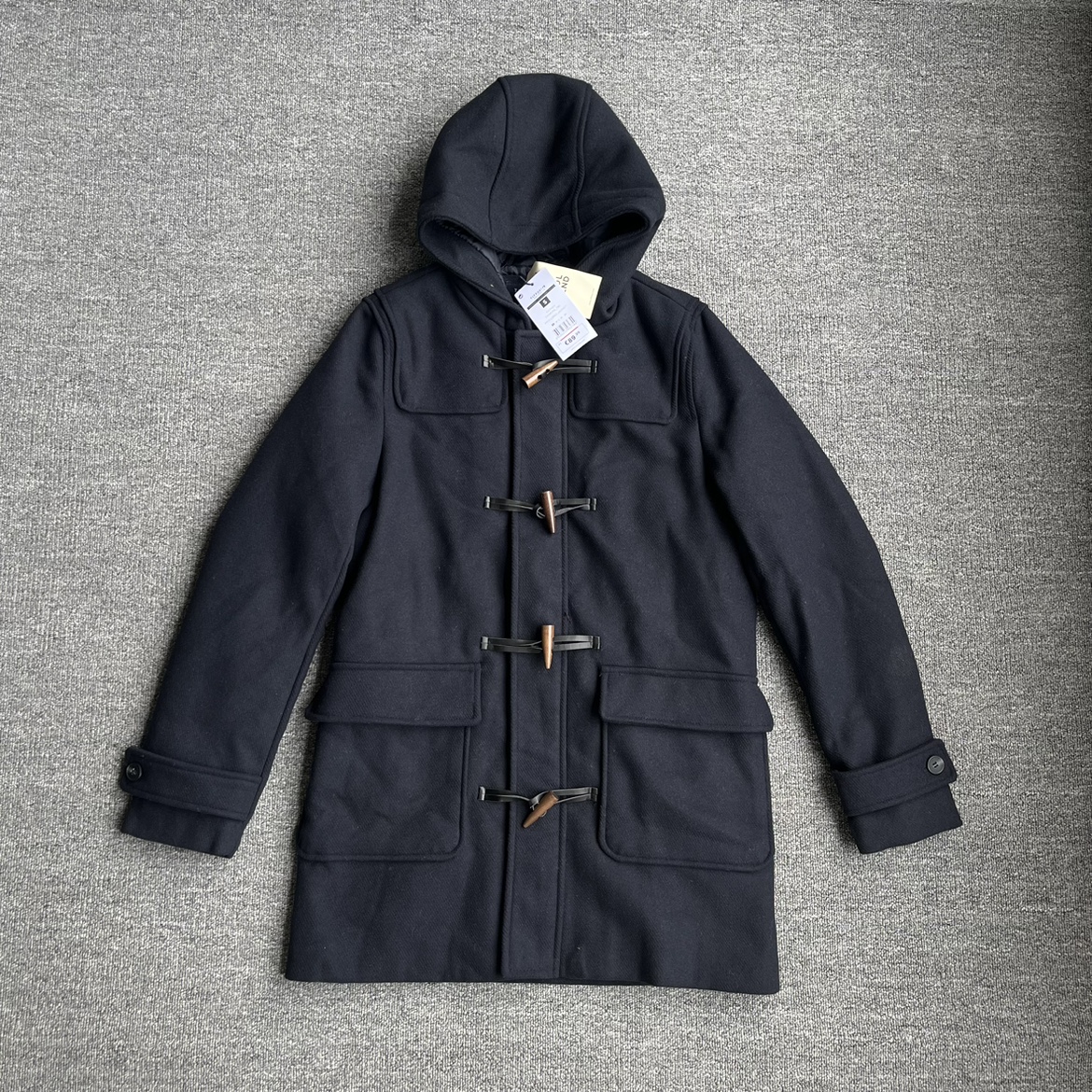 出意大利英伦风仿牛角扣呢子大衣男羊毛混纺冬中长款连帽毛呢外套