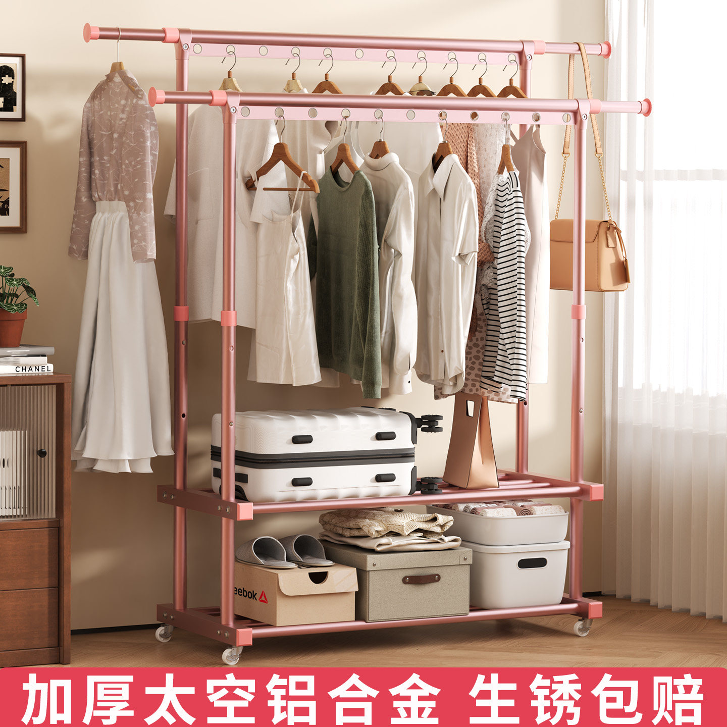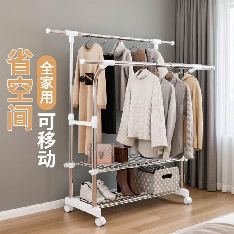 衣架落地卧室家用晾衣架室内双杆式简易收纳挂衣服架子移动衣帽架