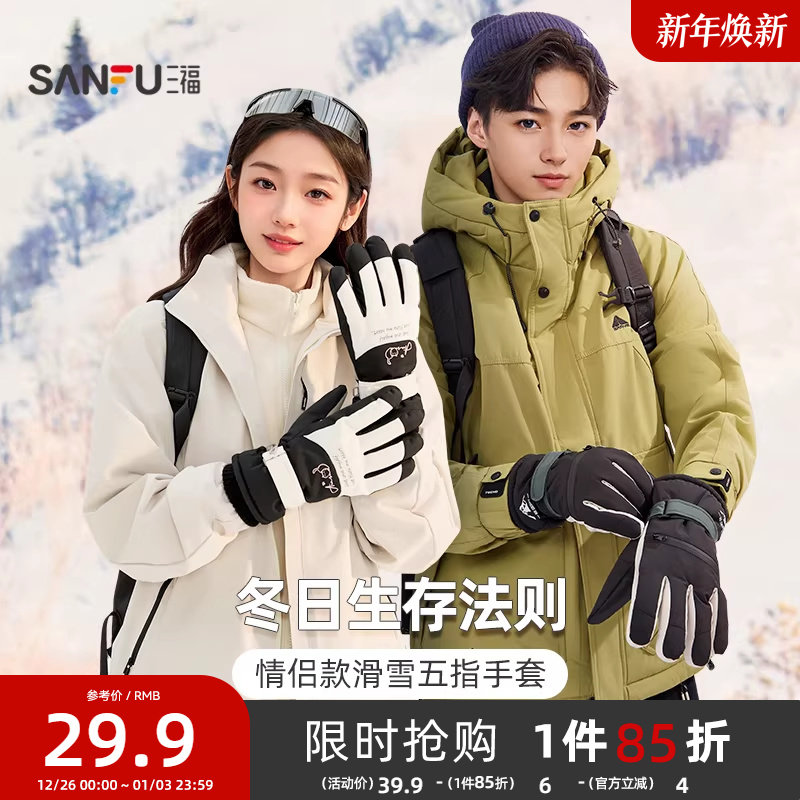 三福滑雪手套女加厚加绒骑行御寒防寒触屏保暖手套男冬天2025新款