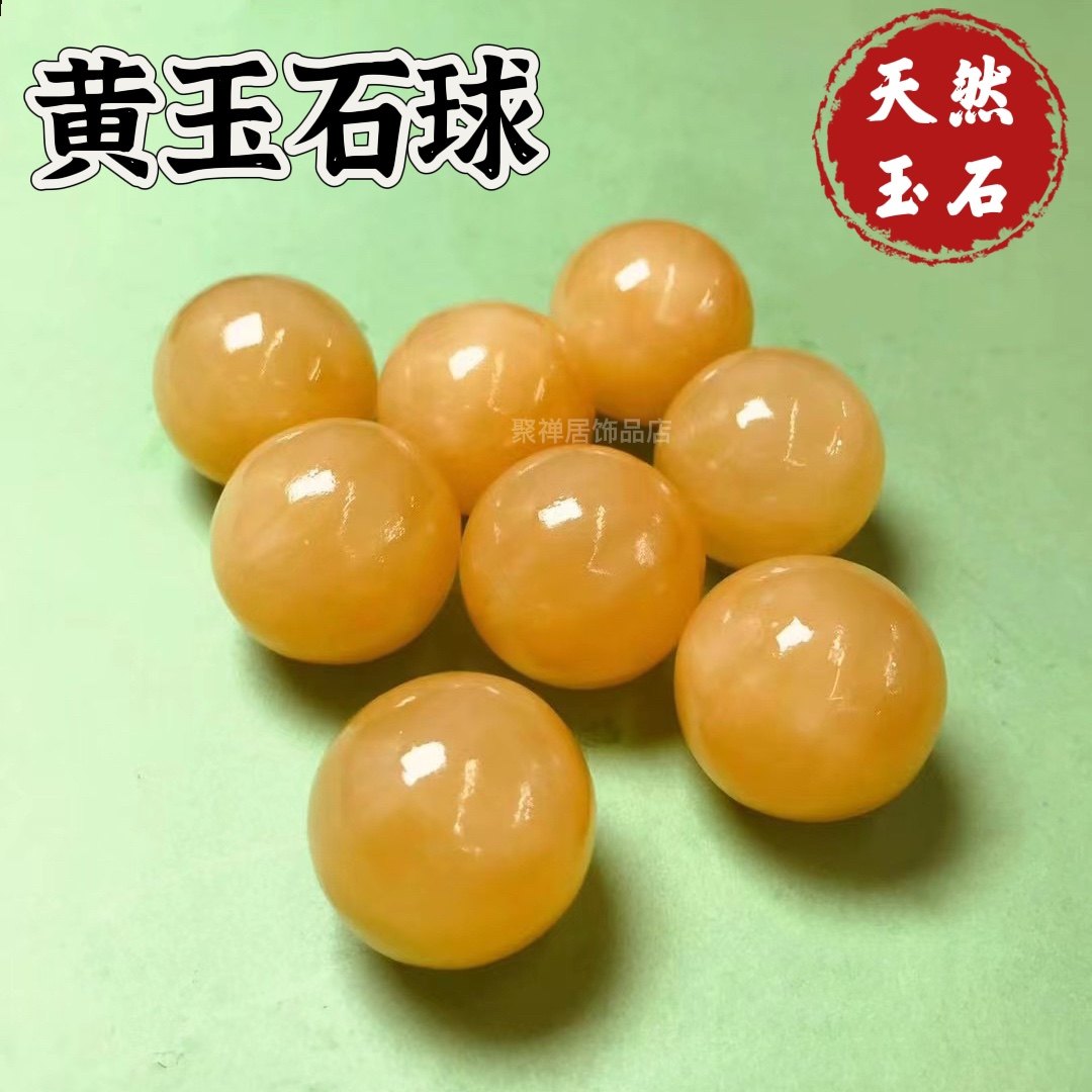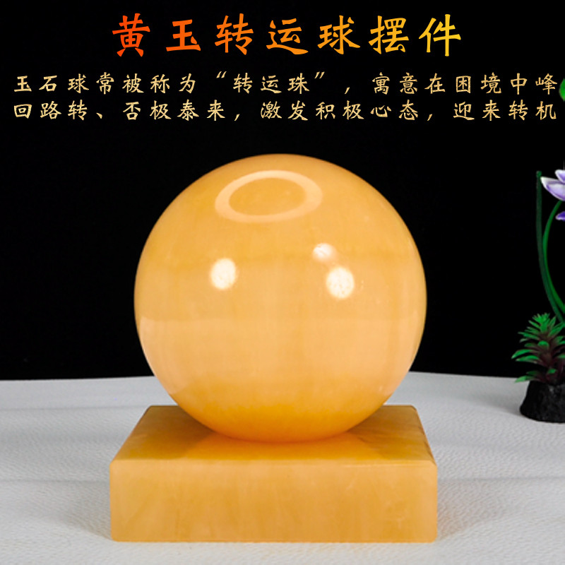 天然黄玉转运球摆件米黄玉风水球客厅桌面招财装饰品开业日常送礼