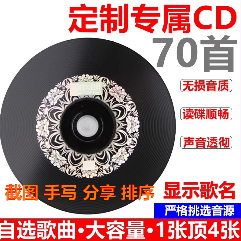 汽车载cd定制黑胶光盘刻大容量70首自选歌曲碟代刻录刻盘光碟制作