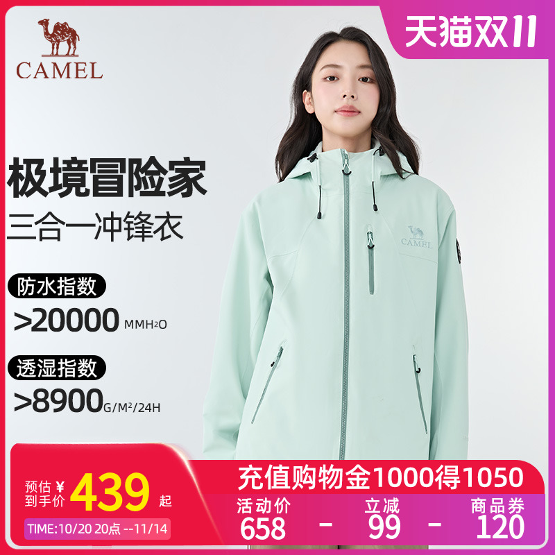 Camel骆驼户外冲锋衣三合一女防风防水登山服保暖夹克进藏外套
