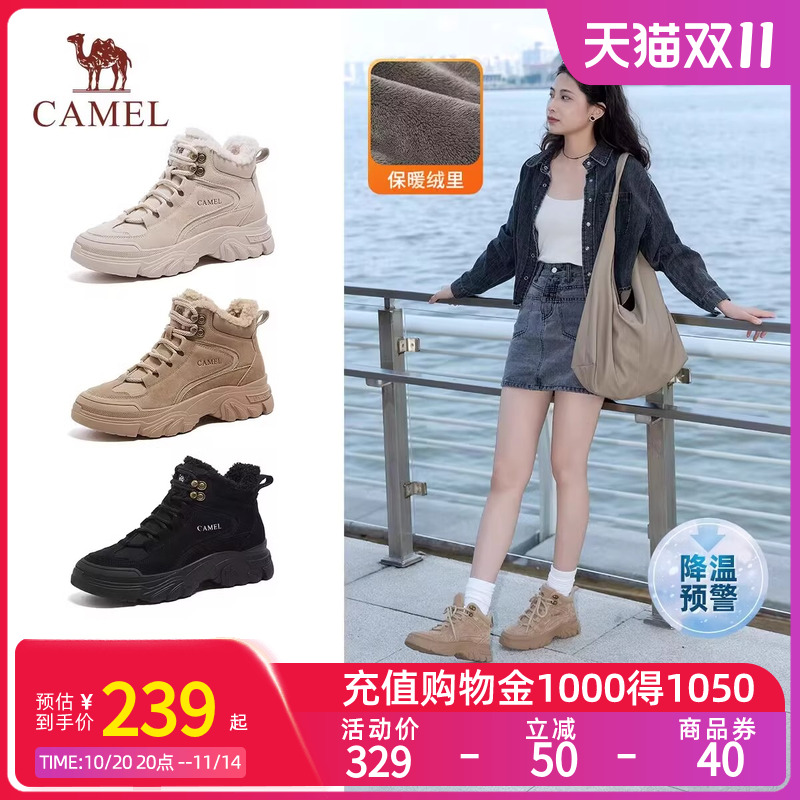 【香菇来了】骆驼女鞋新款保暖时尚雪地靴厚底棉鞋百搭加绒加厚女