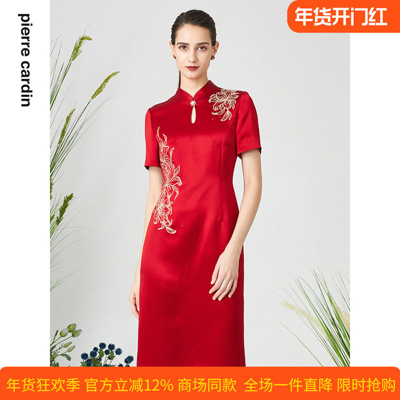 老宋锦春季连衣裙红色长袖订婚喜婆婆婚宴装2025新款妈妈婚宴礼服