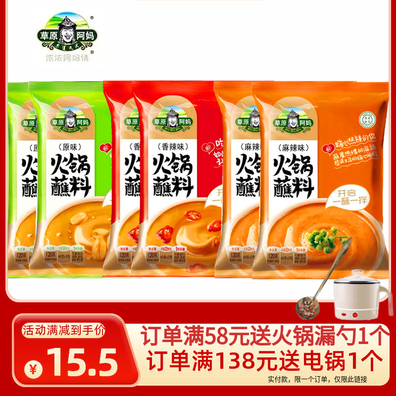 草原阿妈火锅蘸料120g*6袋原味火锅沾料香辣麻辣拌菜芝麻酱麻汁