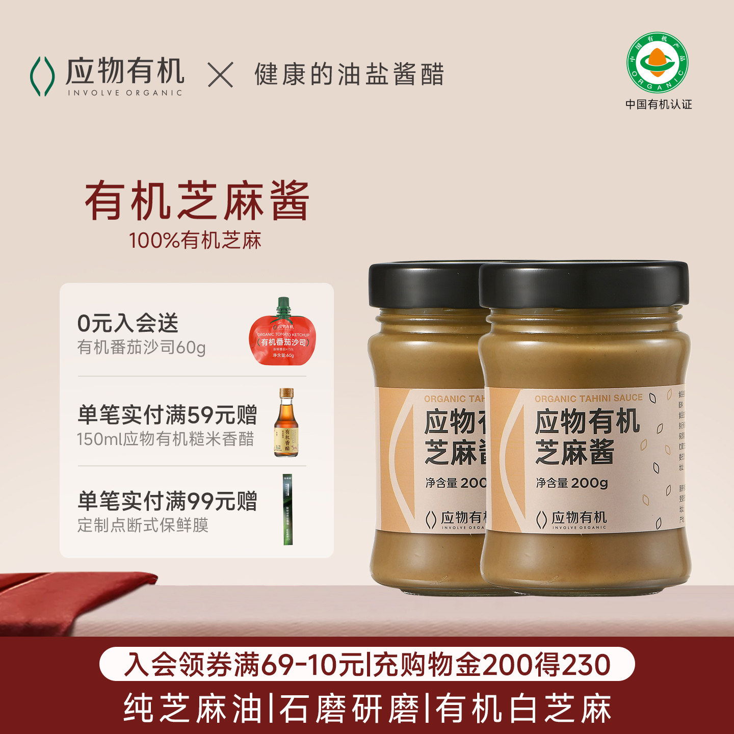 应物有机芝麻酱纯正宗无添加火锅蘸料拌面酱芝麻酱调汁芝麻沙拉酱
