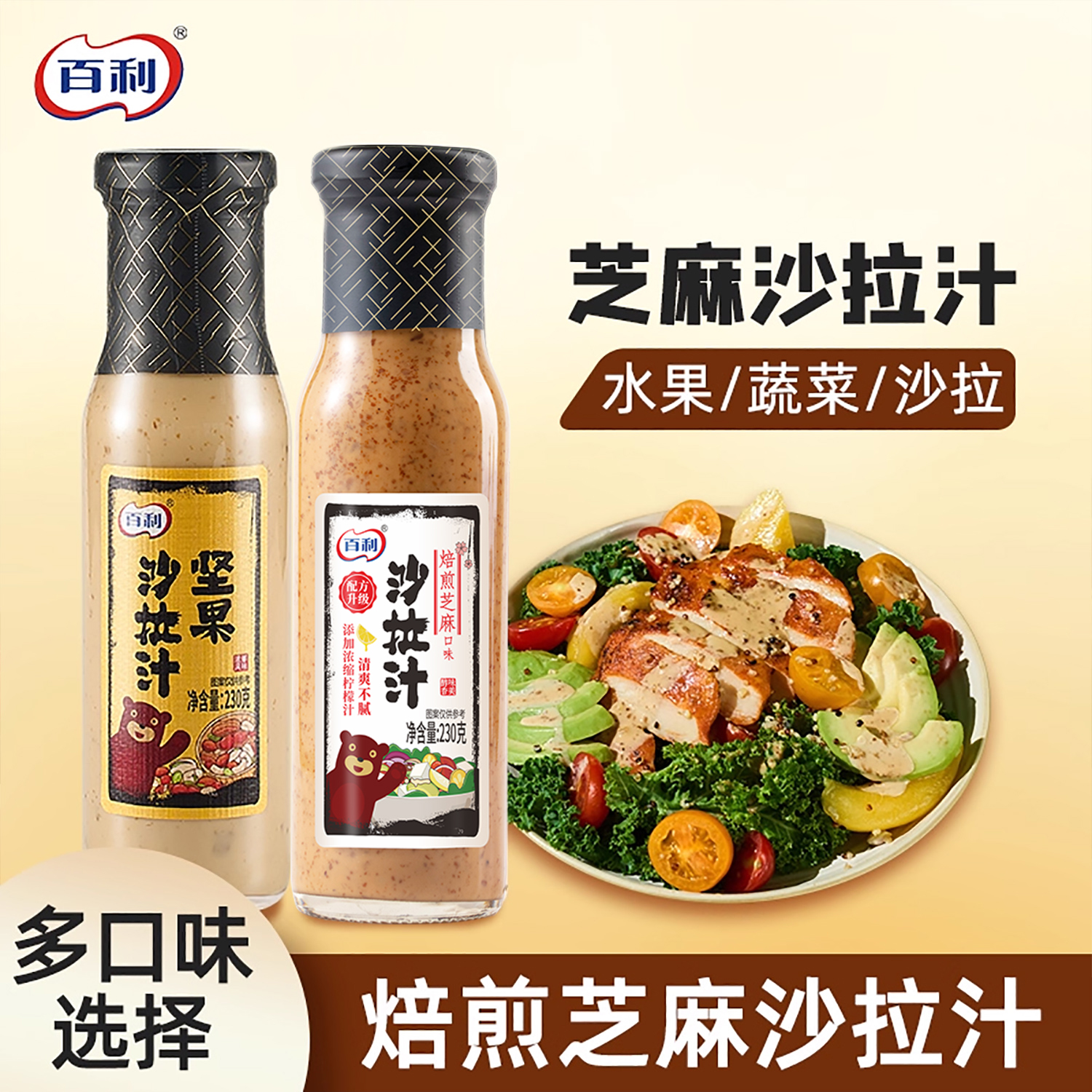 百利焙煎芝麻口味沙拉汁芝麻酱千岛酱火锅蘸料蔬菜水果专用沙拉酱