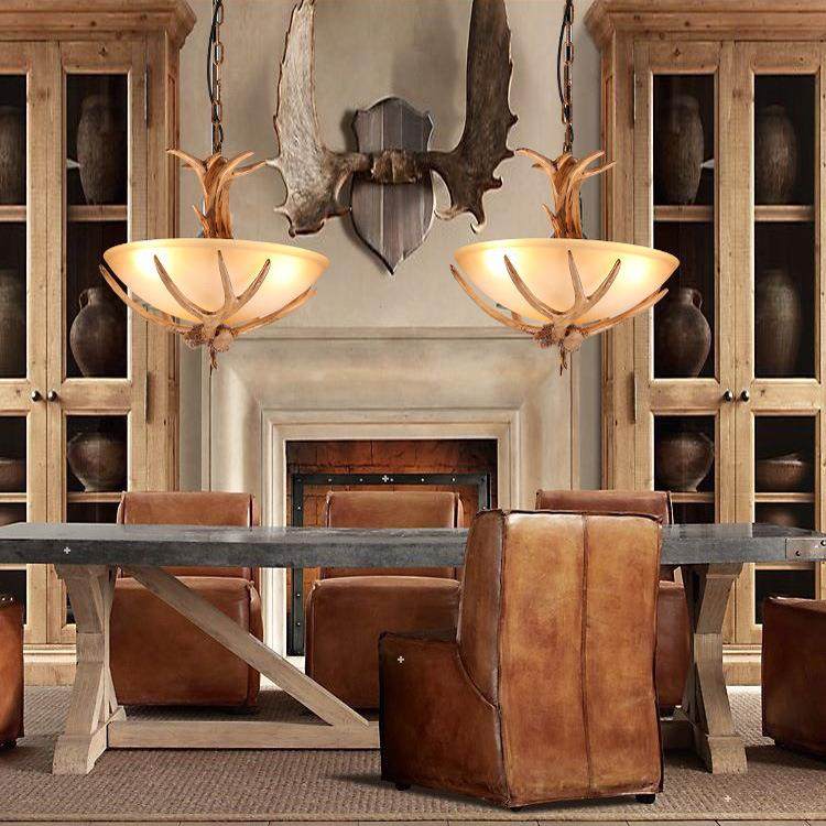鹿角灯北欧客厅餐厅书房卧室吊灯美式田园咖啡厅民宿小木屋装饰灯