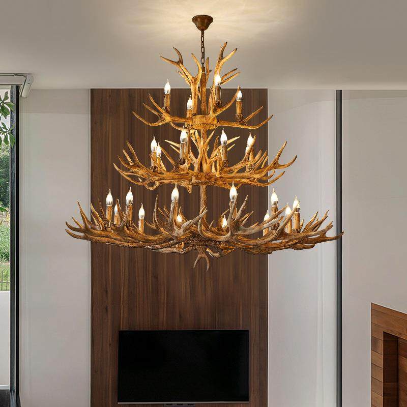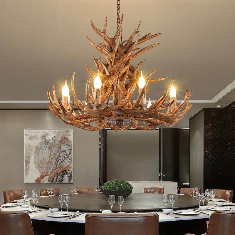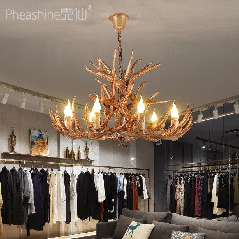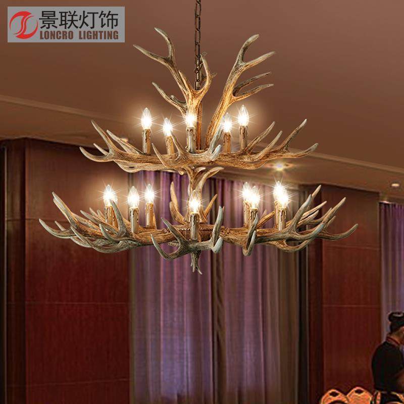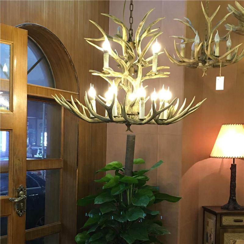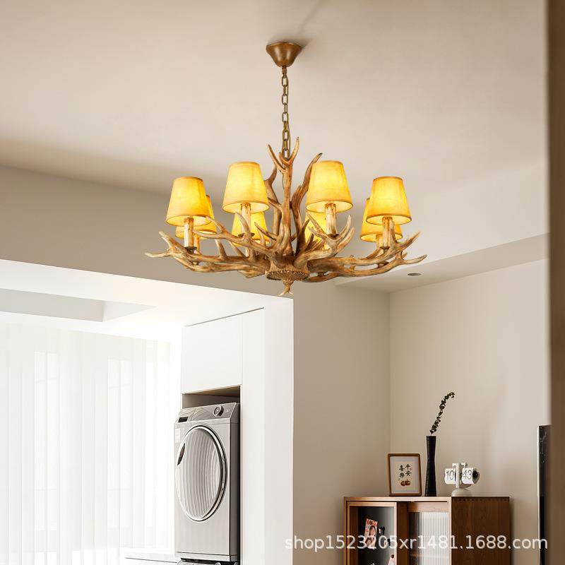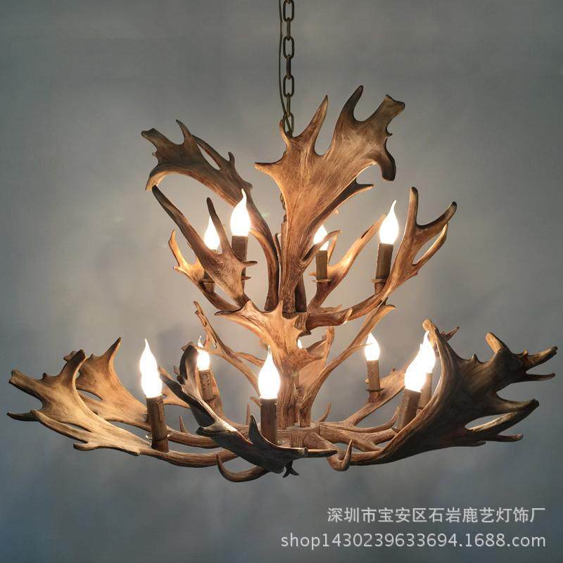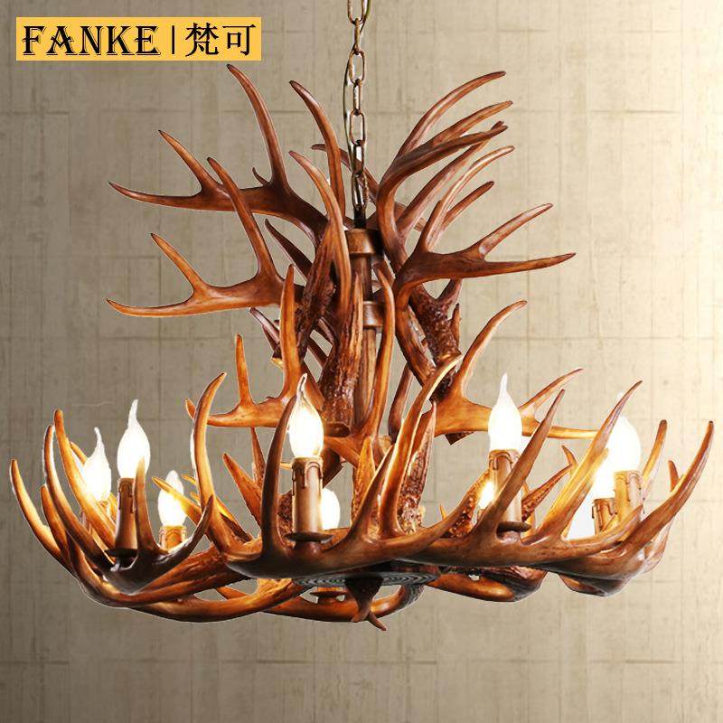 美式乡村鹿角吊灯源头厂家批发仿真树脂鹿角灯客厅餐厅服装店吊灯